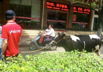 网友爆料,张江地铁站附近惊现奶牛!见过遛狗、遛鸟的,居然还有遛牛的,大城市就是不一样啊!(via. Happy张江)