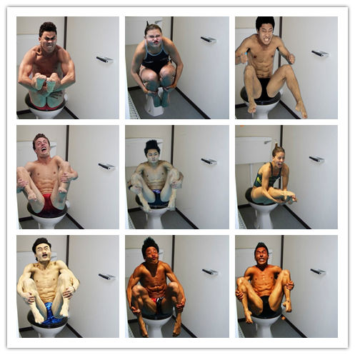 有网友将奥运会跳水运动员们的抓拍瞬间PS到了马桶上,看这表情,建议多吃点蔬菜瓜果啊。