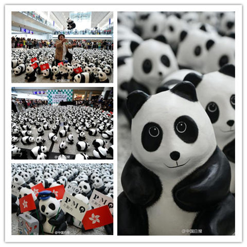 【1600只纸制熊猫亮相香港国际机场】由世界自然基金会和法国艺术家Paulo Grangeon打造的纸熊猫世界巡回展将于6月9日至21日,在香港文化中心广场、维多利亚公园、中环皇后广场及海洋公园等十多个景点展览。这1600只熊猫全部由废纸制成。超可爱有木有?
