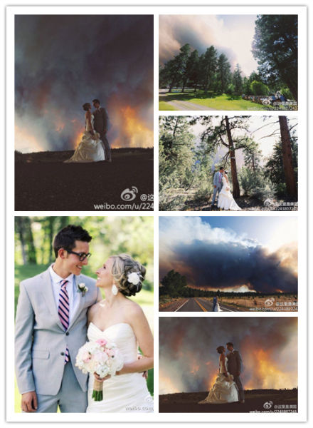 【海可枯石可烂天可崩地可裂,我们也要拍婚纱照......】美国俄勒冈州一处灌木丛7日发生火灾,随后发展成森林大火。原本在此举行婚礼的Michael 和April 本应迅速撤离,但其他宾客都走了,他们却十分淡定地将身后被烧焦如“地狱”的山林当作背景,拍了几张特殊的婚纱照。(via. 这里是美国)