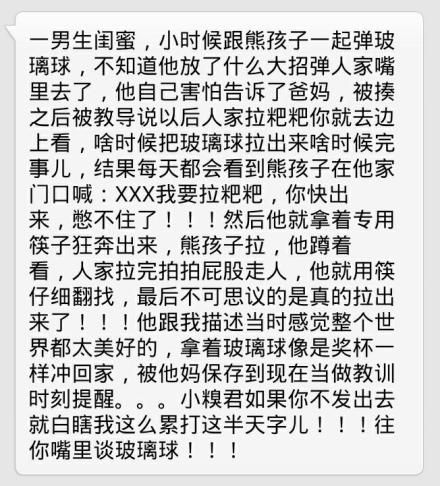 小糗我发出来了,别往我嘴里弹玻璃球。(via. 说出我们的糗事)