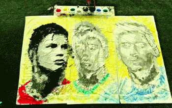 一个妹子用足球“踢”出了一幅C罗,内马尔和梅西的画,简直炫酷,超赞!