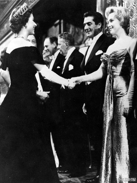 1956年10月,伦敦,梦露和英女王,当时两人都30岁。