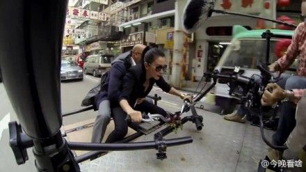 《变形金刚4》片场照,李冰冰的骑摩托车戏是这样拍出来的。