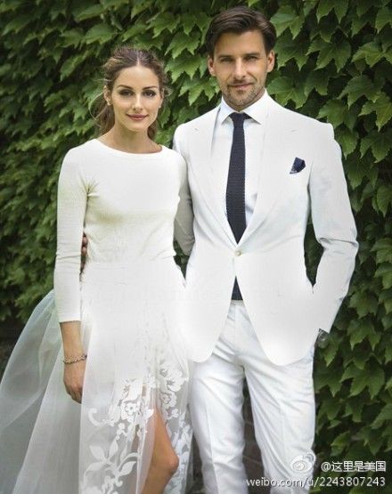 【“绯闻女孩”原型结婚了!】纽约社交名媛Olivia Palerm和德国模特男友Johannes Huebl六年半的爱恋终于修成正果,于上周六在纽约州低调完婚。Olivia出人意料地选择了羊绒针织衫配Carolina Herrera提花半身裙作为婚纱,再搭一双西方婚礼中寓意好运的蓝色Manolo钻鞋。(via. 这里是美国)