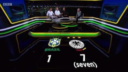 认真的BBC,生怕观众们看错比分,特意在1:7的7下面标了个“seven”…… (via. maninnmako)