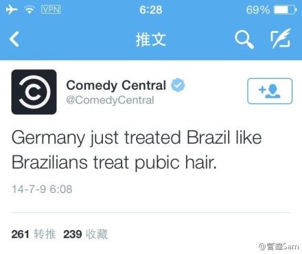 安定医院郝医生:7:1 有一种德国战车虐巴西烤肉的感觉,巴西估计举国抑郁了。