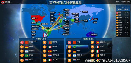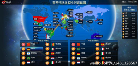 德国战车7:1无情碾压巴西,会有多少球迷抛弃巴西转而爱上德国呢?来自世界杯球迷迁徙地图最新数据显示:赛后2小时内,德国球迷迁入飙升,居32只球队之首,其中25%的新球迷来自巴西!不幸的巴西队球迷纷纷出走,高居32只球队迁出榜之首。