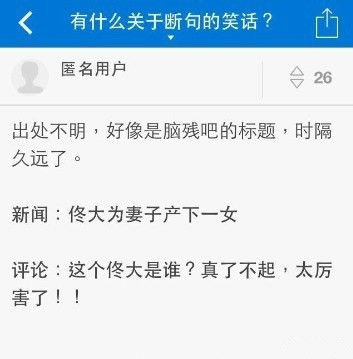知乎上一组关于‘有什么关于断句的笑话’的回答,哈哈哈。(via. 当时我就泪奔了)