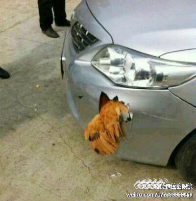 近日有网友爆料,在武汉动物园路十字路口发生一起严重车祸,一只公鸡冲着一辆飞驰的丰田卡罗拉轿车一头撞去,结果轿车保险杠被撞出一个大洞,鸡没死,车坏了。