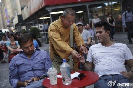 笑尿,除了广场舞大妈,,现在连假和尚也走出国门了!!最近在纽约曼哈顿时报广场,出现了大批假和尚。他们向路人含笑祝福,并递上吉祥符要求捐献,如果施主给得太少,他们会毫不客气的要求多给几美元。目前纽约警方已经逮捕了9个假和尚,罪名是强行乞讨和无照兜售.。.(;¬_¬)(via. 卤吸吸)