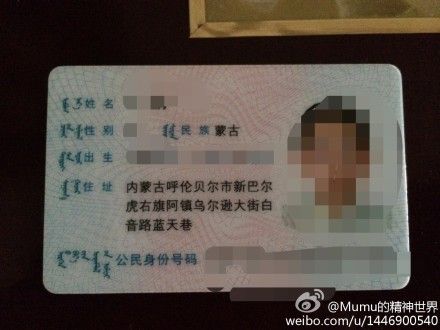 当初一度认为自己是超人候选人呢~哈哈,蒙汉双语身份证~(via. 暗夜淼love)