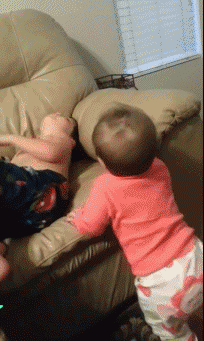 睡觉时被吵醒会有起床气!8个月大的妹妹爬到沙发吵醒哥哥后,睡眼惺忪的哥哥不但没有对妹妹发脾气,反而抱着她轻轻的吻了一下,有爱到爆!(via. 当时我就震惊了)
