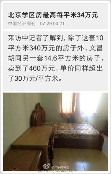 近日,北京的个别房子,一平方米售价34万元,高达5万美元,即使美国人引以为傲的曼哈顿岛的豪宅,也不过2、3万美元一平米,中国人的经济实力,再次令美帝折服,世界钦佩。(via. 作家崔成浩)