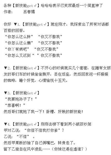 据说有一副对联可以总结所有久未联系的两个人在Q上的聊天过程。上联:在吗?干嘛呢?最近怎么样。 下联:嗯在。没干嘛。挺好的你呢。 横批:呵呵。
