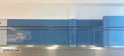 我晕!原来机场的平地电梯还可以这么玩!!!太油菜了!