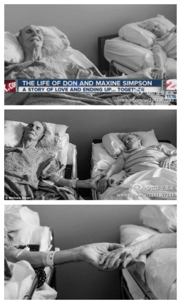 【你若不离不弃,我必生死相依】加州一对夫妻Don与Maxine Simpson结婚62年了,Don两周前摔倒后身体就不行了,同时,妻子Maxine潜伏多年的癌症再次复发,最后两人在同一天去世。直到生命的最后一刻,他们依然握着对方的手,始终没有放开。(via. 这里是美国)