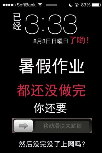 推特上的“moca_fav”同学想出了一个好方法,用极其有震慑力的壁纸督促自己赶快做暑假作业,翻译如下……(via. 小野妹子学吐槽)