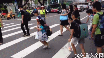 台湾一所小学门口,协管员正在帮助拦车,以保证孩子们安全通过。这时一位小女生在通过马路的同时,还不忘向协管逐个鞠躬,如此有爱,真是萌萌哒!
