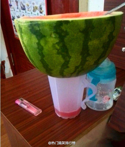 把西瓜底挖个洞,吃完还能来杯西瓜汁,这日子真爽啊~ 新技能get!