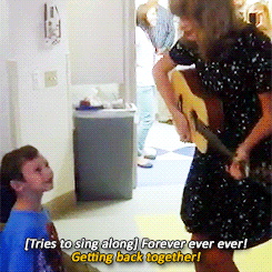 泰勒·斯威夫特最近来到波士顿儿童医院,看望六岁的癌症患儿小歌迷乔丹,并特地为他进行专场表演