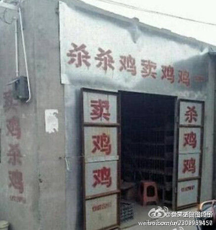 老板你这样杀气外露的卖鸡,给我十个胆子也不敢进去。