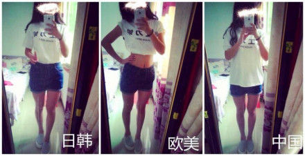 一张图告诉你三种国家得女生,体恤加短裤得穿法!