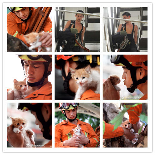 【生命平等!消防硬汉救下萌猫!心】杭州大关消防中队的消防员叶豪杰,训练回来在中队门口大树上救了一只喵。这是他们这个夏天救的第三只喵。拍摄者@左生_ 说,他们中队还救过很多流浪狗的,因为队里不能养狗救过来都送人了。另外,最后两张福利照是帅哥消防员训练时拍的。偷笑小猫咪的眼神好萌!(via. 新闻晨报)