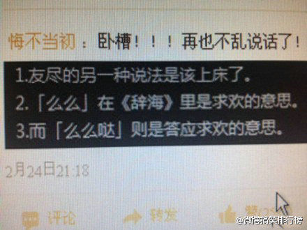 昨天我跟别人说友尽,结果她说么么哒,囧哥是不是错过什么了。