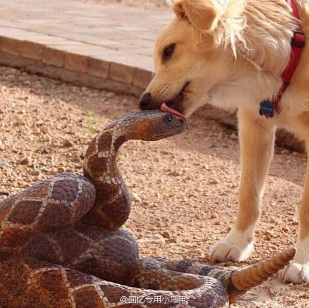 蠢汪见到蛇,冲过去照头上就舔……蛇直接被扑面而来的热情击昏……迷离的小眼神娇羞、诧异、欲拒还迎……三个疑问直击蛇的灵魂:这货是个啥?!它咋看上我了?!我要不要nèng死它?!(图自tumblr)