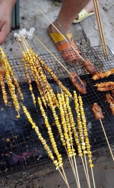 同学她们朋友聚会野炊发来的照片。我只想说玉米不都是整个烤得吗?这样的我第一次见……