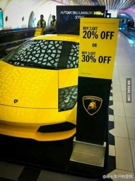 听说兰博基尼在促销,两辆8折,三辆7折。(via. 所长别开枪是我)