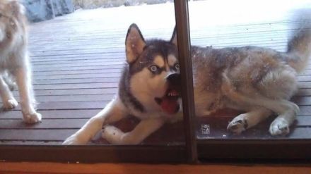 我惩罚我家哈士奇的方式就是我在里面假装吃它的狗粮,把它锁在外面看。