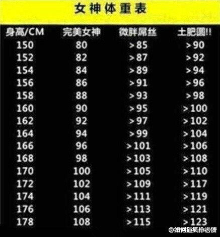 女神体重表……我想一个人静静。