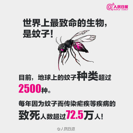 【O型血招蚊子?胖子才招呢!】你知道吗?今天是世界蚊子日。设立这个日子,可不是为了“纪念”蚊子,而是为了提醒人们,蚊子是传播疾病的主要媒介之一,是最致命的动物排名NO.1,每年致死人数超过72.5万人!(via. 人民日报)