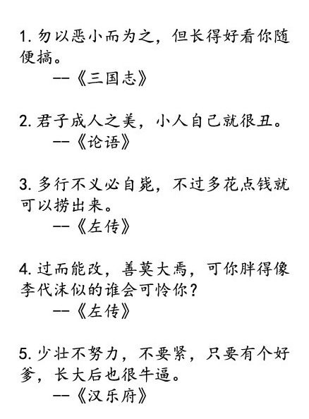 听过许多名言,却总觉得不符合这个冷冰冰的世界。稍微改一改,立刻毫无违和感了。(via. 小野妹子学吐槽)