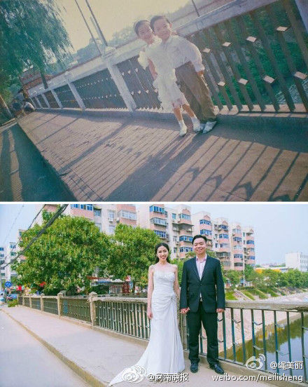 【6岁时说要娶她 18年后再相逢真就娶了她】6岁那年,瑞瑞偷偷跟妈妈说,要娶小伙伴茜茜当媳妇。搬家时他们在郑州熊儿河桥边留下了一张合影。18年后,他们再相遇时,他瞬间爱上了她。他们在这里再次合影,这一次,女孩为了男孩穿上婚纱。年幼时你说要娶的那个女孩,如今在哪儿?TA还好吗?(via. 绳美丽)