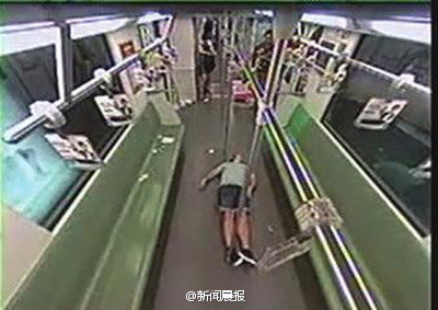 【老外地铁内晕倒 车厢里乘客10秒内跑光】9日晚,上海一名外籍乘客在地铁车厢缓缓倒向右侧,随后躺倒,又因列车减速翻落在地。见状,对面5人起身逃离,不到10秒,该车厢已空荡荡。监控显示,因有人喊"出事了",前后3节车厢的乘客蜂拥而出,一名中年男乘客甚至摔倒在地。(via. 新闻晨报)