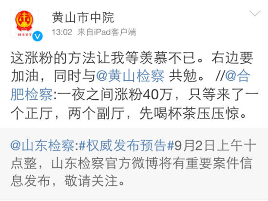 有的人就看不下去了,比如@合肥检察 和@黄山市中院 这两个官号。。。