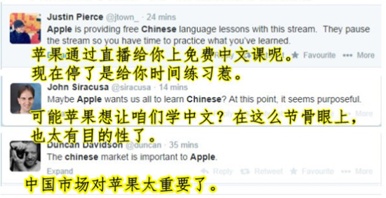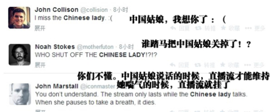因为工作人员的失误,全球的直播都能听到中文的同声传译。。。结果,twitter炸了!(英国报姐)