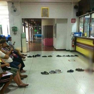 你看看人家这队排的多好,既有秩序有能休息。。。