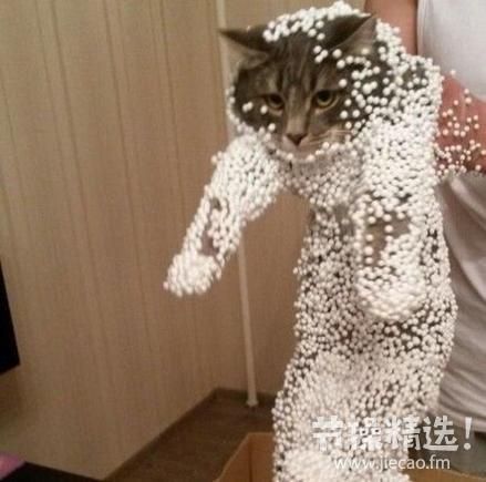 英国一只好奇的喵星人误入“神秘”纸箱,结果纸箱内的静电作用使其浑身沾附白色泡沫球,模样蠢萌,就像刚在雪地上打过滚。