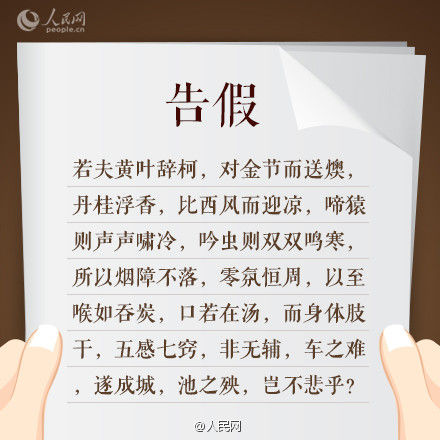 学生写文言文请假条获称赞