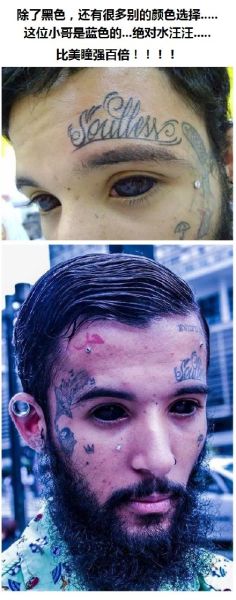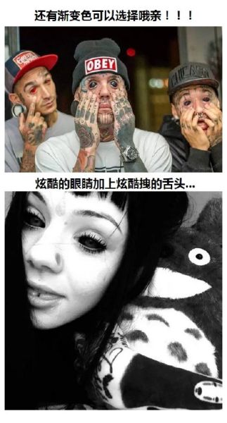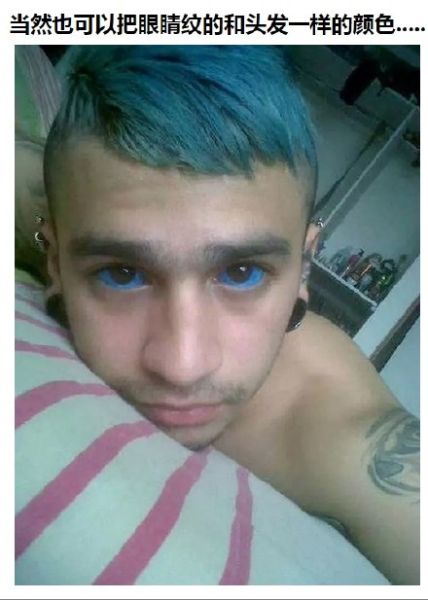 还记得之前说的眼球纹身吗.。.其实这个趋势真的在潮人间越来越流行了..。.除了最受欢迎的把眼球纹成黑色.。.还可以选择纹成红白蓝绿青红紫.。.还有渐变色..。.你也可以把眼球纹成和头发一样的颜色,或者和好基友一起去纹个情侣色..。.总之就是各种炫酷拽。