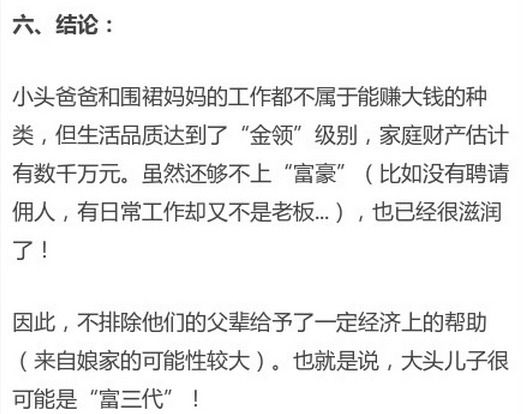 看到个贴“大头儿子家到底多有钱?”根本想像不到!