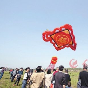 众多围观的市民焦急地等待了两个多小时后,好风翩然而至。在一只黄绿色的三叶虫风筝牵引下,巨大的“中国结”风筝被风鼓了起来,它搭载着竹篓里的3只黑山羊徐徐向上升展。蓝天下、草地上,在人们的欢呼声中,风筝上大大的“福”字传递着喜悦和幸福。