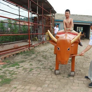 电动牛驮着小孩走来走去 新文化报 王强 摄