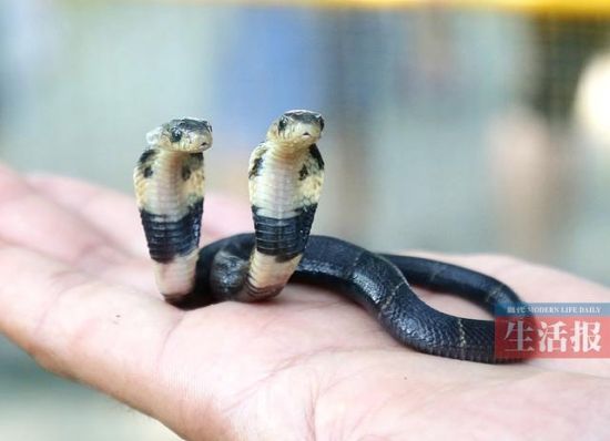 8月7日,南宁市动物园的饲养员李科其从黄先生手中接过这条刚出生不久的小蛇。小蛇学名叫中华眼镜蛇,别名舟山眼镜蛇。来到世界已经10多天,已经蜕了一次皮。“这条双头蛇已经入园两天,仍旧不吃不喝。”李科其说,小蛇身体状况目前还可以,但他仍担心会因为抵抗力不佳而生病。