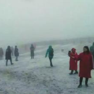 长白山受台风影响8月飞雪 创全年降雪奇观(图)