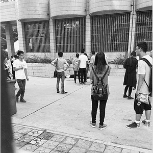 5日上午,事发地济南大学西校区礼堂东过道已恢复平静。记者看到,有不少过往的学生向楼顶张望,小声议论着。他们表示,已经听说了4日发生的惨 剧。一名男生从手机里找出网上流传的照片,记者在照片中看到,一穿白衣黑裤的年轻人倒在地上,头部流了很多血,腿下压着一个红色的正方形盖子。